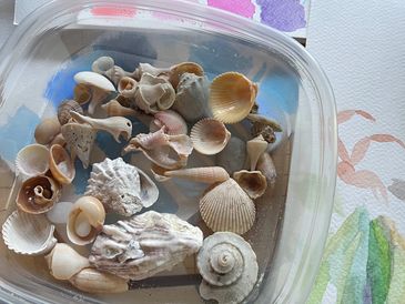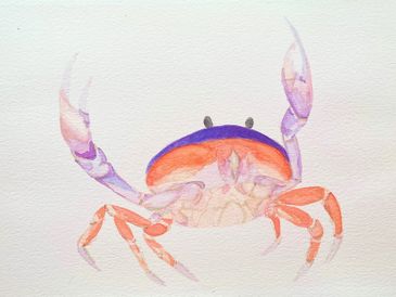 I studied art in college, biology in graduate school, love the beach, and have a silly, whimsical sense of humor, all of which combine in these paintings. I affectionately call them “the grumpy shrimp.” I am also an interior designer and art dealer based in Alexandria, Virginia. I have two kids, a dog, and a cat.